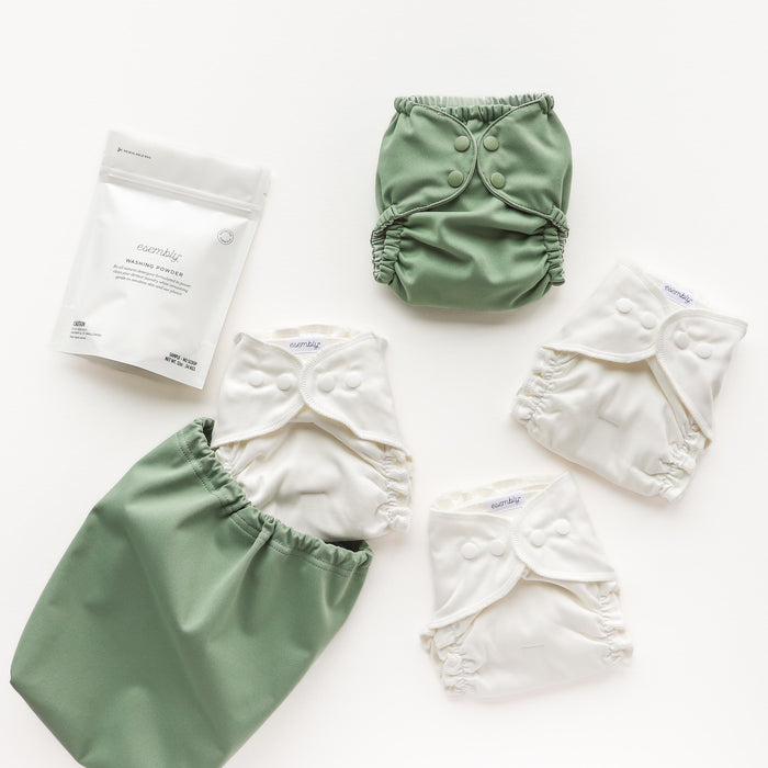 The perfect cloth diaper starter set! Our Try-It Kit provides everything you need to give the Esembly system a road test before committing.