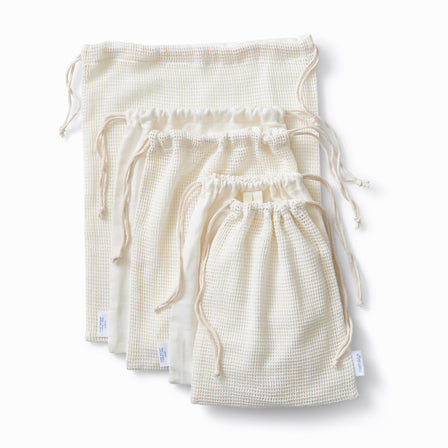 Save 40% on sets of 5 organic cotton produce bags that protect and prolong the life of your fruits and veggies.