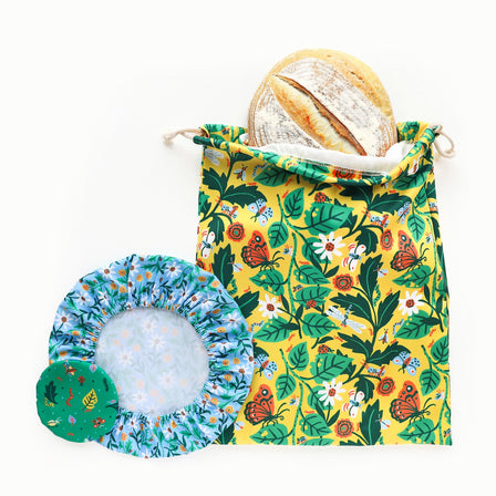 Get 40% off this discontunied print of our unique dual-layered Bread Bag with matching Starter Cap and Proofing Cover.