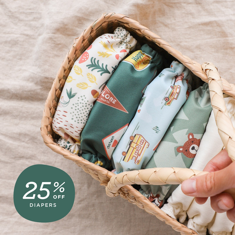 Soft, trim-fitting and ultra-absorbent, our cloth diaper bundle is gentle on your baby and our planet.