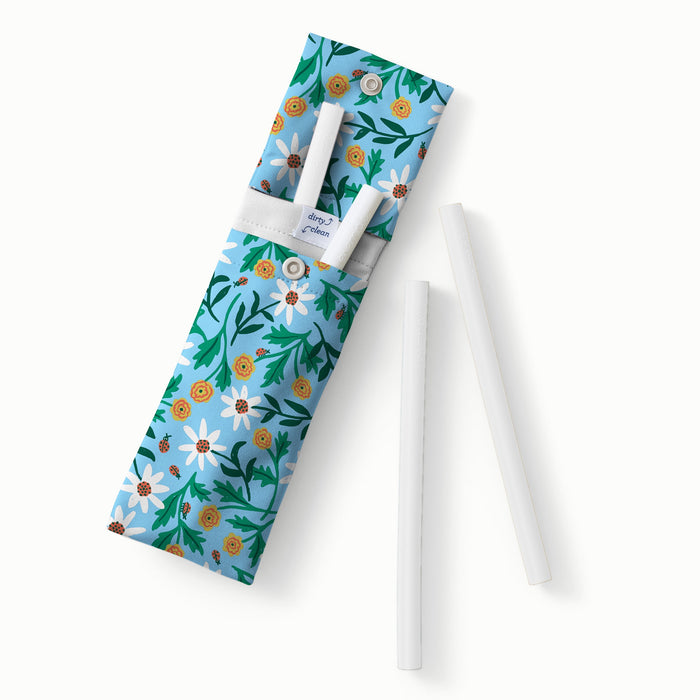 Straws can be hand washed or run through the dishwasher. Be sure to dry thoroughly before zipping back up.