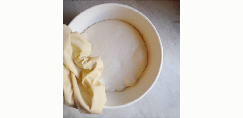 5. Cover your dough with the large Esembly cap from your Sourdough Set and begin your bulk rise. The dough needs to rise for approx 3-4 hours with gentle kneading every 30 minutes. It sounds like a lot, but it's not. The kneading takes place inside the bowl by doing a series of "turns". Super easy (and even fun!).