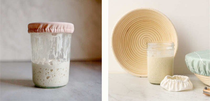 Keep your starter in a 32 oz wide mouth Mason Jar with and cover it with the small cap* from your Esembly Sourdough Set.