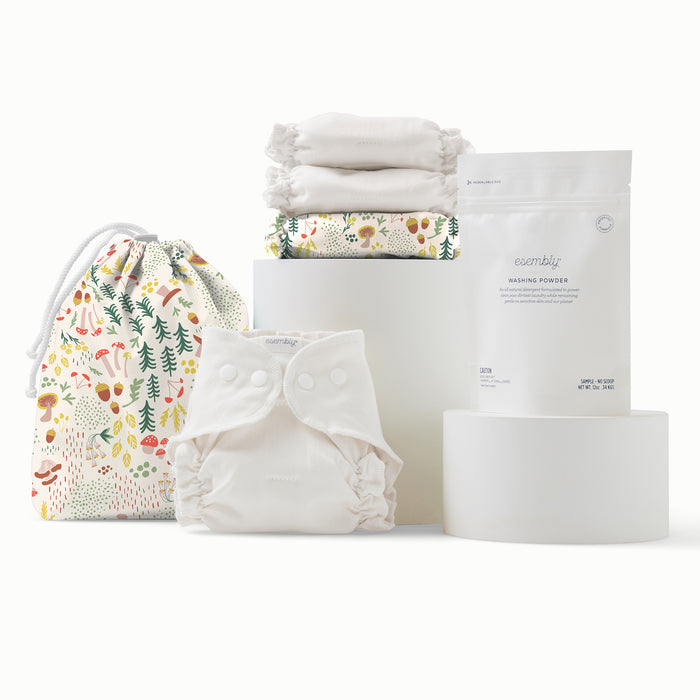 The perfect cloth diaper starter set! Our Try-It Kit provides everything you need to give the Esembly system a road test before committing.